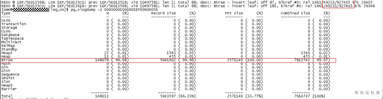 2)使用pg_xlogdump解析其中一个xlog文件,发现该xlog文件都为带索引导入业务