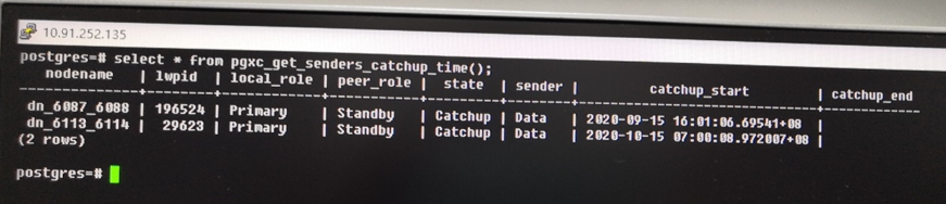 select * from pgxc_get_senders_catchup_time();