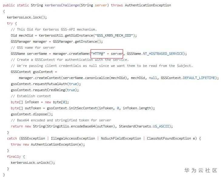 | // GSS name for server // GSSName serverName = manager.createName("HTTP@" + server, GSSName.NT_HOSTBASED_SERVICE); String nameStr = "HTTP/node-masterxxx.COM"; GSSName serverName = manager.createName(nameStr, GSSName.NT_HOSTBASED_SERVICE); |