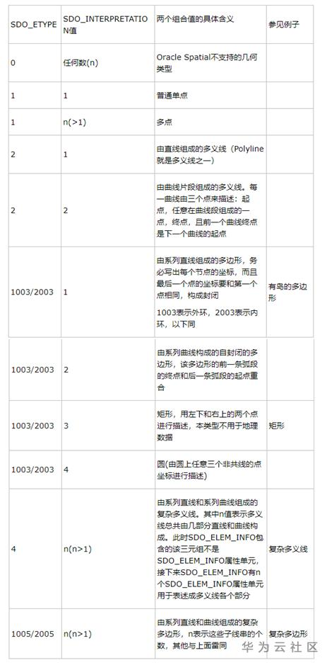 SDO_ETYPE和SDO_INTERPRETATION 的组合关系