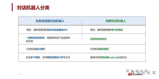 本篇文章主要将对话机器人分为两类,一种是任务完成型对话机器人,另一种是闲聊对话机器人,上面的表格简要对比了两种机器人,我们可以简要区分一下,一个偏理性,一个偏感性。