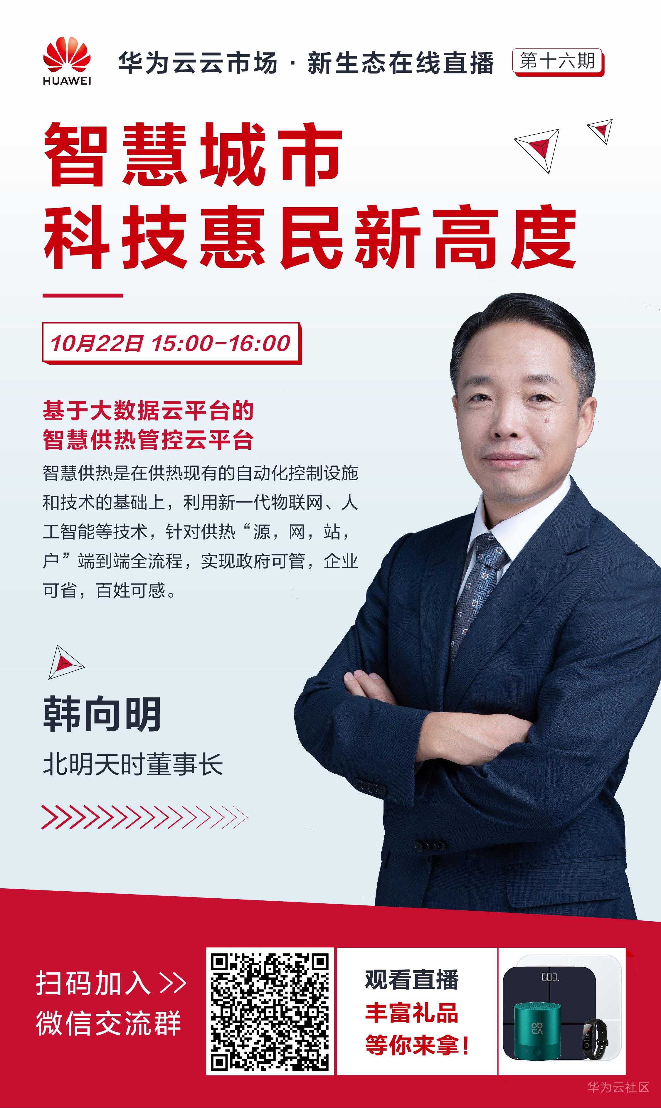 直播观看地址:https://bbs.huaweicloud.cn/webinar/100023(选择智慧城市·科技惠民新高度)
