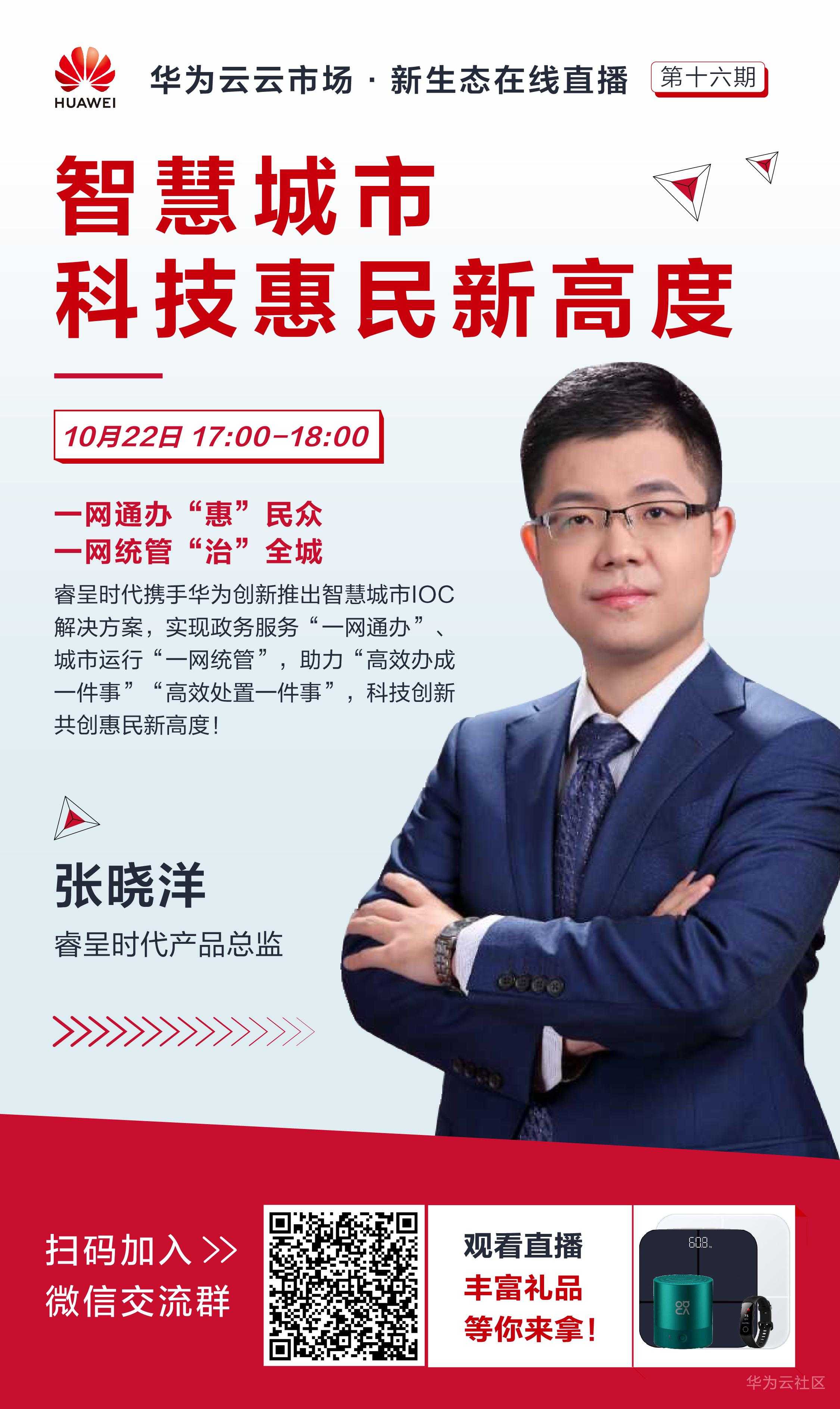 直播地址:https://bbs.huaweicloud.cn/webinar/100023(选择智慧城市·科技惠民新高度)