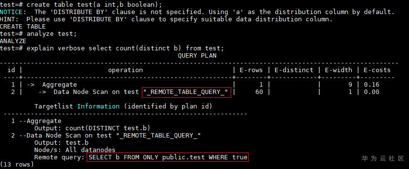 例子中,distinct的b列为bool类型,不能做分布列,所以在DN通过局部的数据无法算出有效的distinct,所以这种场景不能下推,只能是DN把数据返回给CN统一执行,否则最终的计算结果会出现错误。