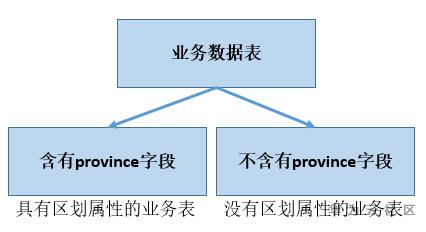 通过对客户业务表进行分析总结大致分为两类,一类具有明确的区划属性(含有province字段),一类不含区划属性,属于全省公共业务表。具有区划属性的业务表需要实现按区划显示和拆分,没有区划属性的业务表保存全省公共数据,对于每个区划均可见。