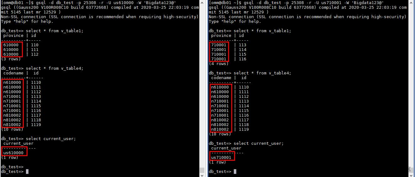 --创建区划用户,A区划us610000,B区划us710001 create user us610000 identified by 'Bigdata123@'; create user us710001 identified by 'Bigdata123@';