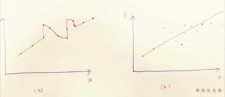 显然,(a) 对应于过拟合的情形,而 (b) 则对应于欠拟合的情形。