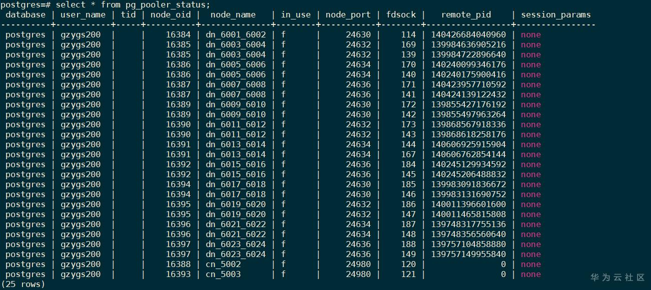 可以连接CN后通过pg_pooler_status查看,如下图: