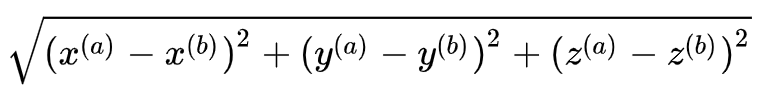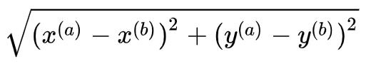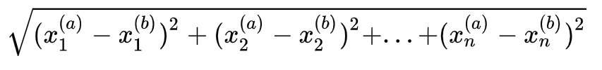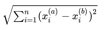 欧拉距离:任意空间下两个点的对应维度的坐标值相减的平方和再开方