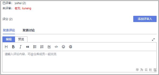 华为云代码托管服务提供了积分制的在线Code Review功能,项目参与者可以在评审中进行打分、评论、发起讨论等操作,总积分可以作为一个标准,团队达成共识后,方可进行下步的合入分支等操作。