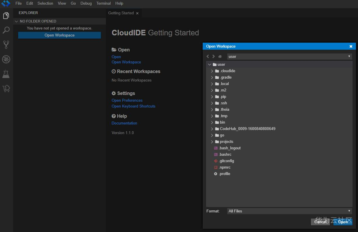 华为云代码托管服务内置了Cloud IDE功能,开发者可以在浏览器中Coding。