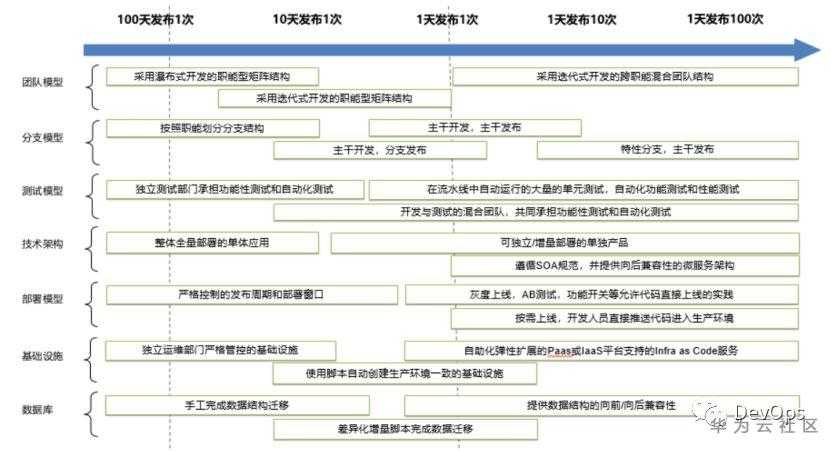 工程层面,系统和环境、流程、配置等等需要解耦,不只是架构层面的解耦,工程层面也需要相应的匹配跟解耦。核心的一个业务指标叫TTM,在DevOps有另外一个词叫Lead Time,就是你的前置时间,从业务需求提出来那一刻起,到这个业务需求上线的时间叫前置时间,这个是可以被客户感知的。DevOps更强调从提交代码那一刻起,一直到代码上线,这段时间是完全工程可控的,理论上应该是控制在分钟级。这个指标,也是华为云DevCloud最为看重的一个。