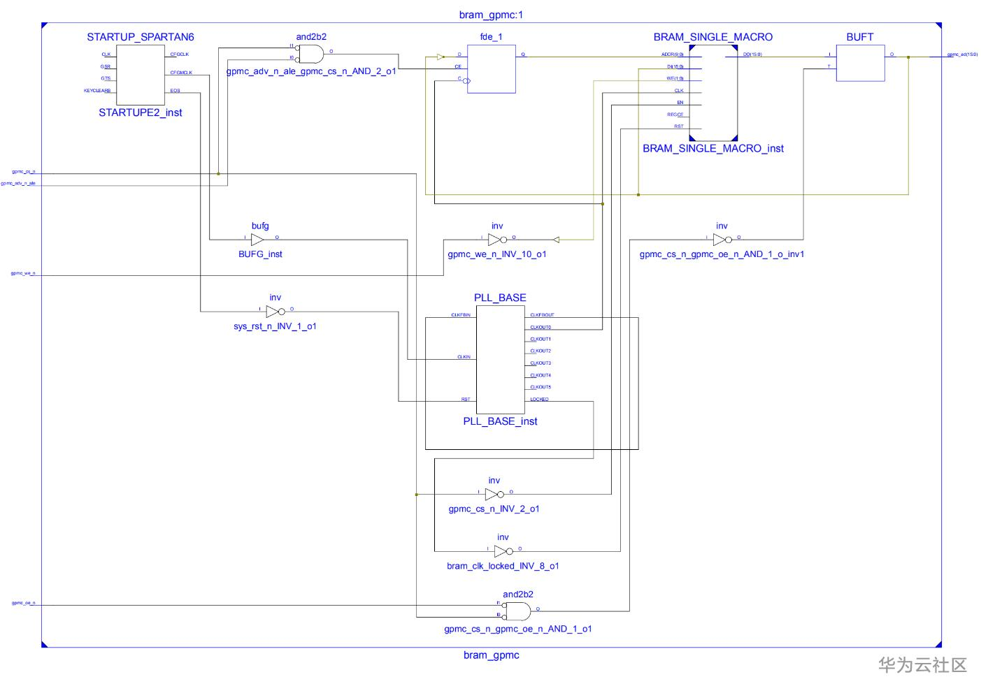案例功能:将FPGA内部的BRAM资源通过并口转换时序在核心板内部与ARM端的GPMC(General Purpose Memory Controller)并口总线连接,实现ARM端对FPGA端BRAM资源的读写。本案例GPMC接口采用16bit地址线与数据线复用的异步读写模式,片选使用CS1。