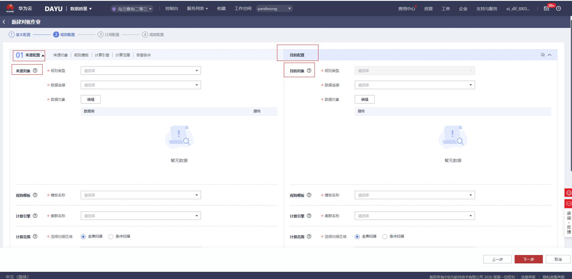 在准备好跨源数据连接后,接下来进入数据质量模块,创建对应的数据对账作业