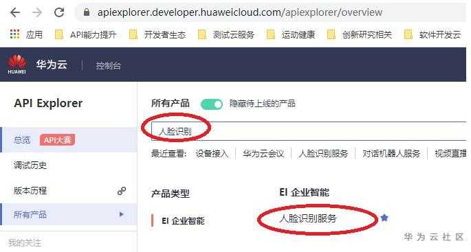 在搜索框输入人脸识别,搜索相关的云服务: