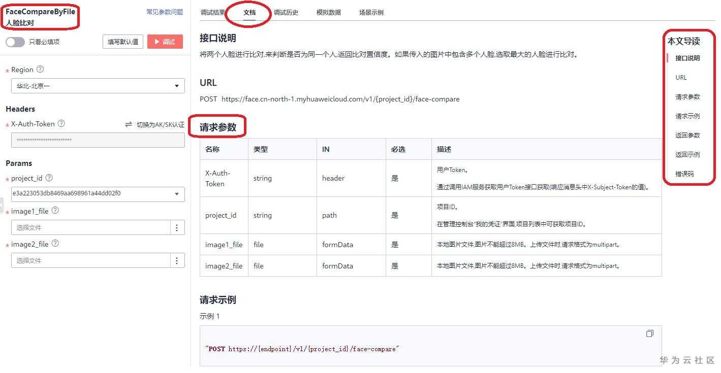 我们直接可以选择要比对的图片,在API Explorer上点击调试按钮来在线调试这个API: