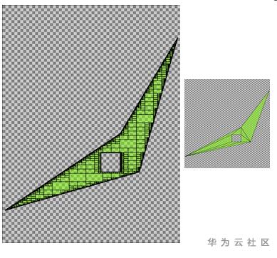 第二个改进是对单个镶嵌三角形进行紧凑的维度编码,以便它们可以有效地存储在树的叶子上,而不需要不必要的大量空间。这是通过使用三个数据维度(总共七个维度)来完成的,这使得编码能够从前四个边界框维度重建三角形的三个二维顶点。