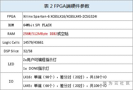 表 2 FPGA端硬件参数