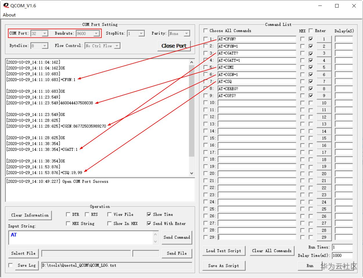串口调测工具(Quectel_QCOM.zip)获取:https://bbs.huaweicloud.cn/forum/thread-26979-1-1.html