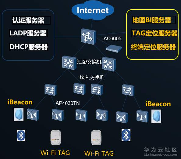 三射频AP独立射频,为终端定位WiFi TAG提供定位扫描。地下车库结合蓝牙beacon,可实现1m~3m的高精度定位。华为开放API接口对接奕通应用平台,实现客流分析和室内导航,精准营销,并提供运营决策支撑。