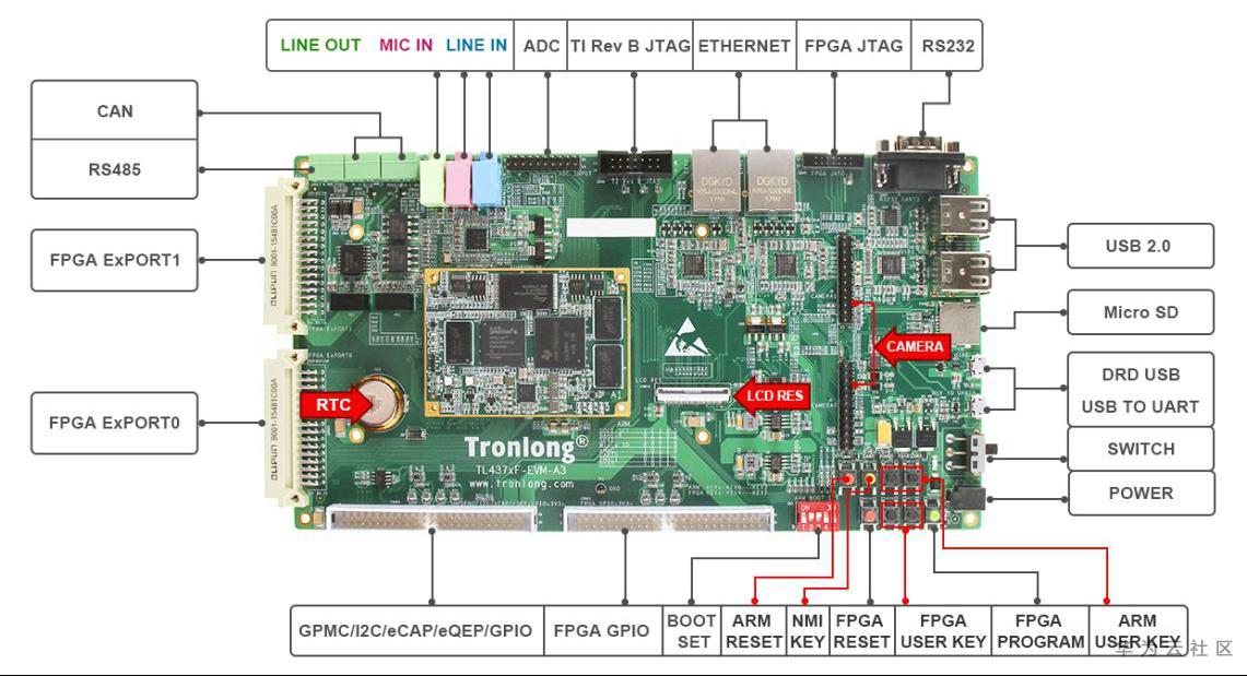 本案例基于创龙科技(Tronlong)的TL437xF-EVM(AM437x ARM + Spartan-6 FPGA)评估板、TL8568P(ADS8568)模块进行测试。