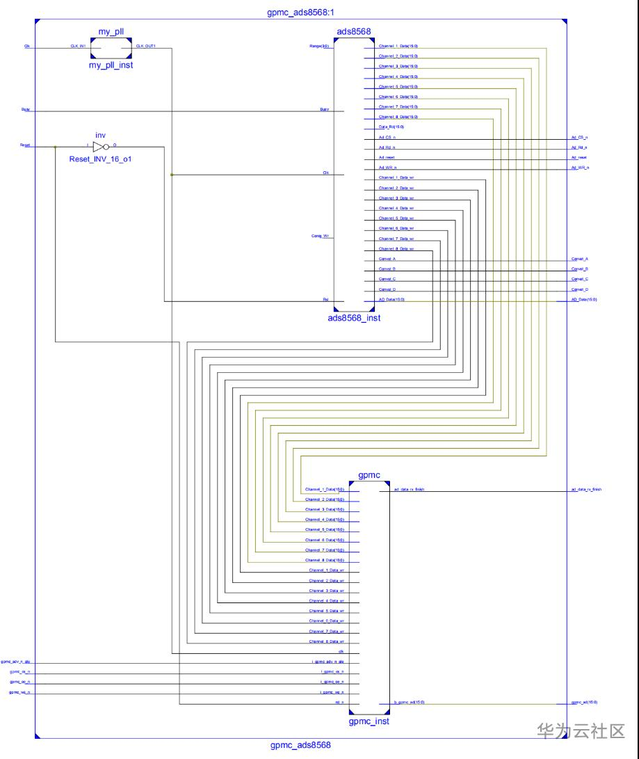 (3) 调用gpmc模块,将ads8568模块的数据通过并口发送出去。