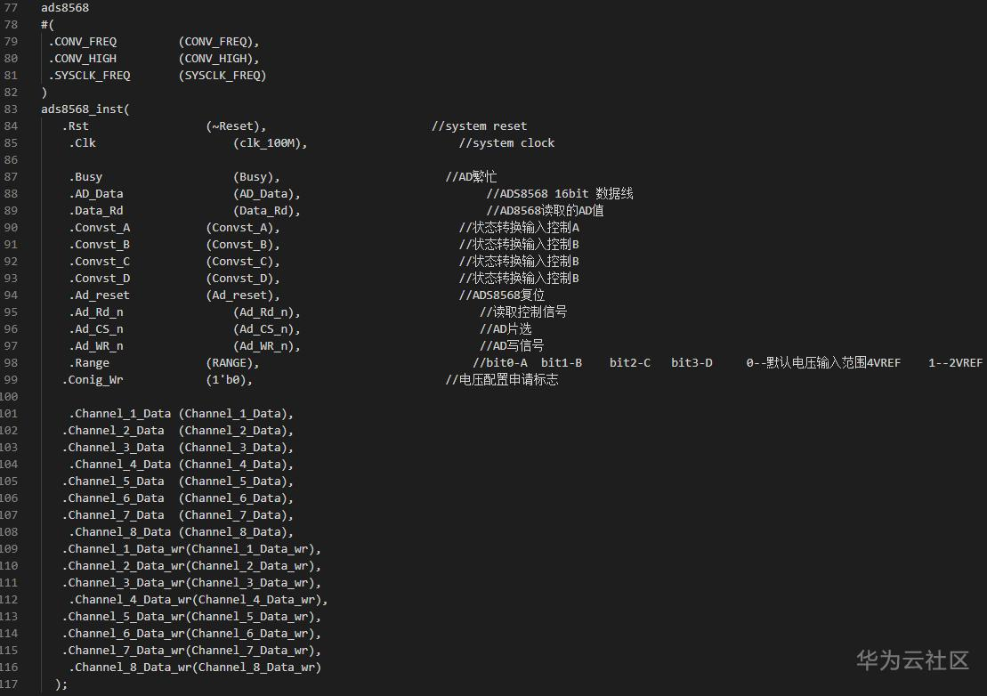 (2) 调用ads8568模块,控制AD数据采集。