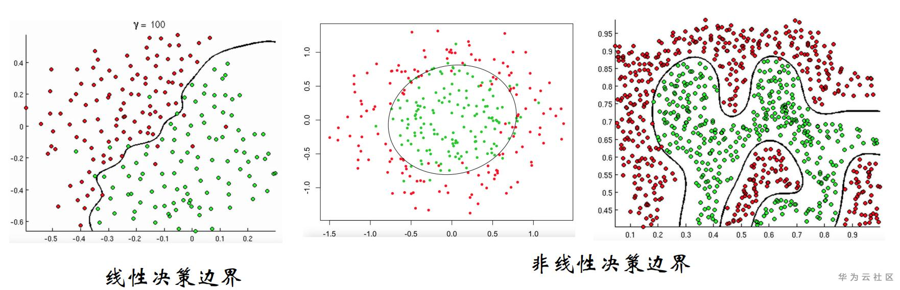 下图为各种各样的决策边界:
