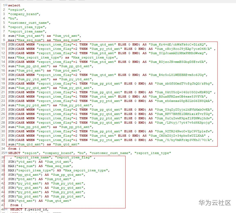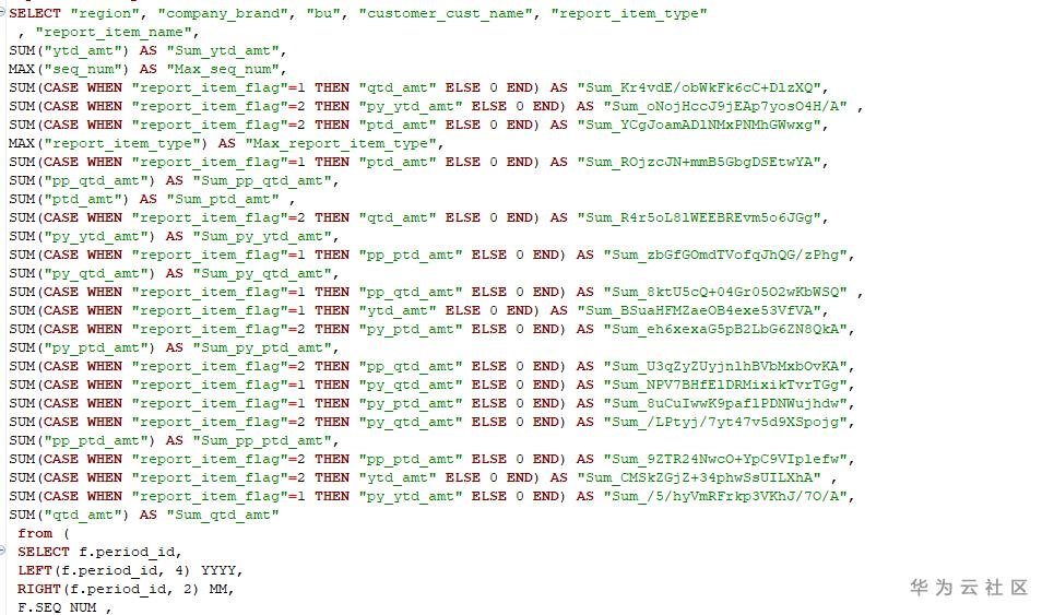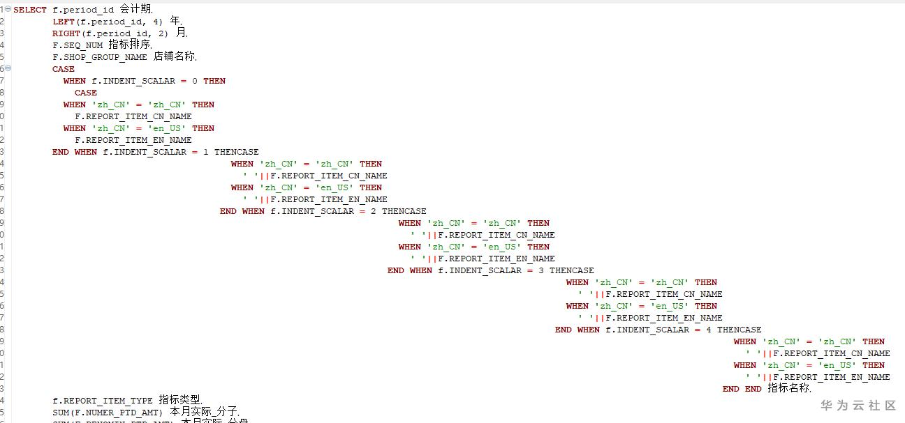 再看一个例子,下图的例子中,会进行聚集函数的计算,但在下方的case when中频繁引用这些聚集函数,导致聚集函数计算多遍。