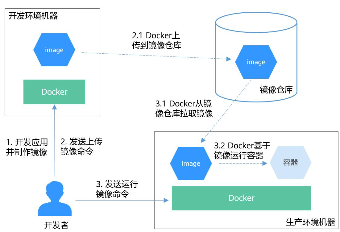 首先开发者在开发环境机器上开发应用并制作镜像。