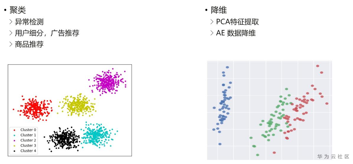 2. 典型应用场景-数据分析:通过无监督聚类的方式对不同用户进行聚类,在每个类内进行广告推荐,商品推荐;通过无监督方式对数据进行降维,加速计算。