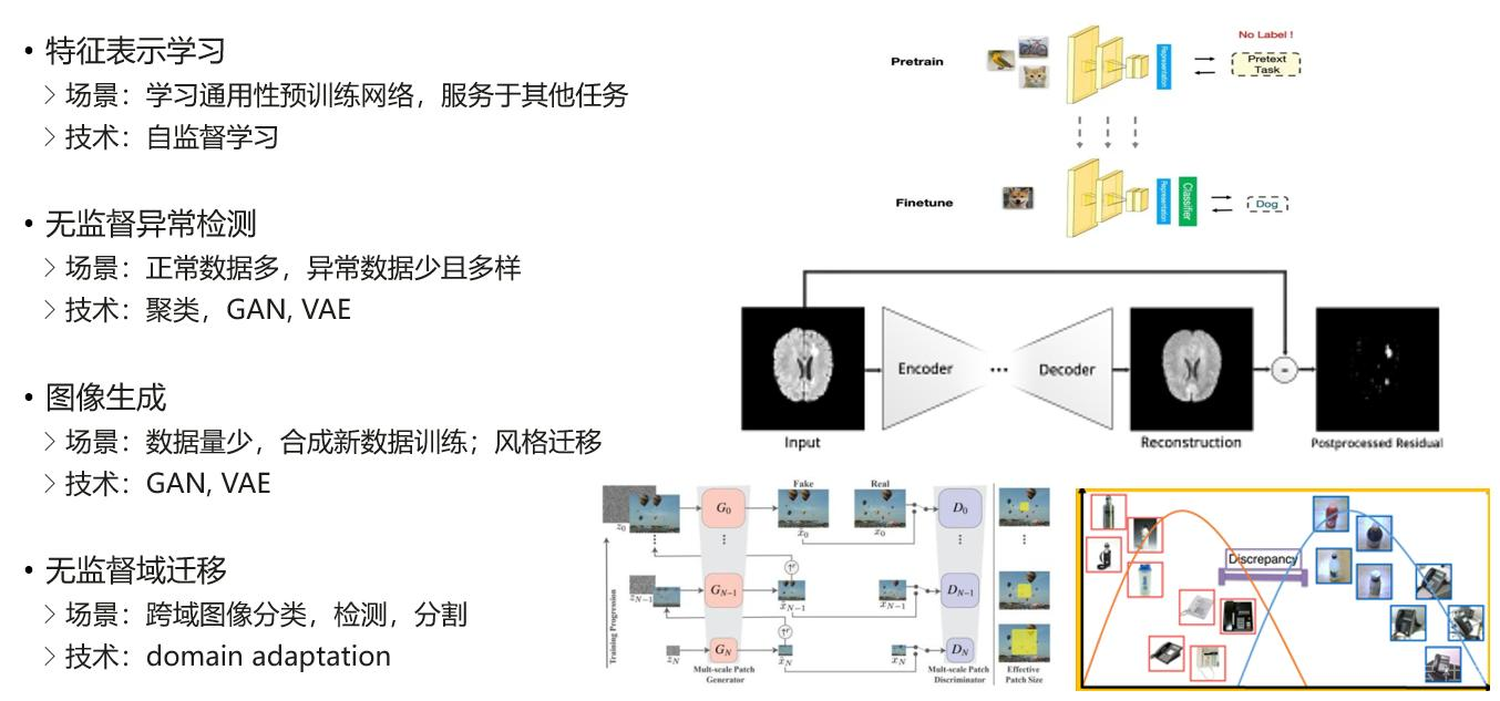 3. 典型应用场景 - 计算机视觉:特征表示学习,无监督异常检测,图像生成,无监督域迁移。