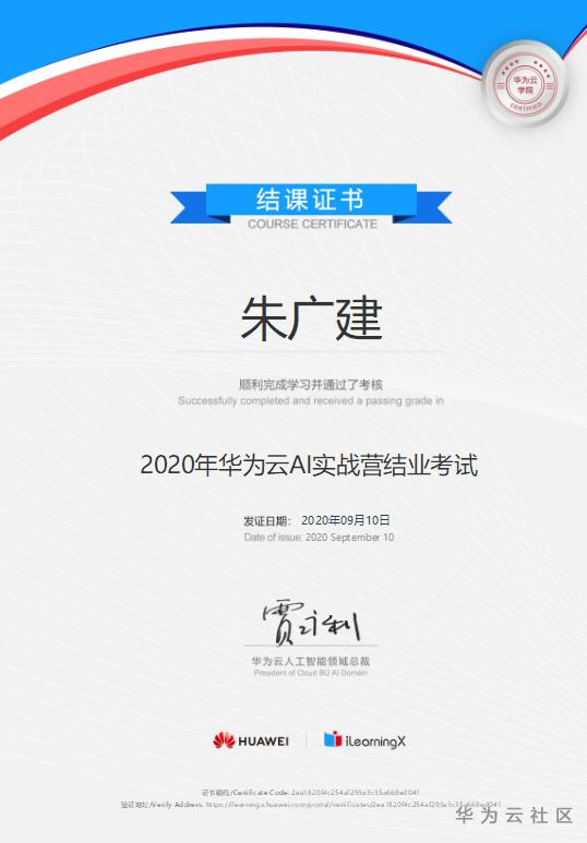 一转眼来到2020年,接触AI已有了1年多的时间,这期间我依然没闲着,有空就会去华为学习平台上去逛逛,看有什么新的知识可以获取,5月份的一天,偶然在平台上看到了今年Modelarts训练营的宣传,看了大致简介后,觉得这是一个具体学习应用AI技术的好机会,不仅能学到技术,还有丰厚的奖品可以领取。在此期间,还加入了HDZ社区,与大家共同学习AI,跟着教学视频和技术文档,第一次使用Modelarts平台开发出了简单的应用,这种感觉特别棒,尤其是当你的生活乏味且无趣时,学习一些新东西可以帮你改变心境,提升精神面貌。于是,历经4个多月的学习,终于完成了AI训练营的全部课程,其间也遇到了一些困难,当然也在大家的帮助下解决了,在这里特别感谢训练营的讲师们,小助手,JeffDing,andyleung以及和我一样的开发者们。未来Modelarts平台将更加强大,也期待自己将来可以有一些好的点子可以去借助Modelarts平台来实现。训练营结束后,想到前几个月还异常火热地微信群突然安静了下来,反倒有一些小失落,心想还能不能再来一次这样的经历。