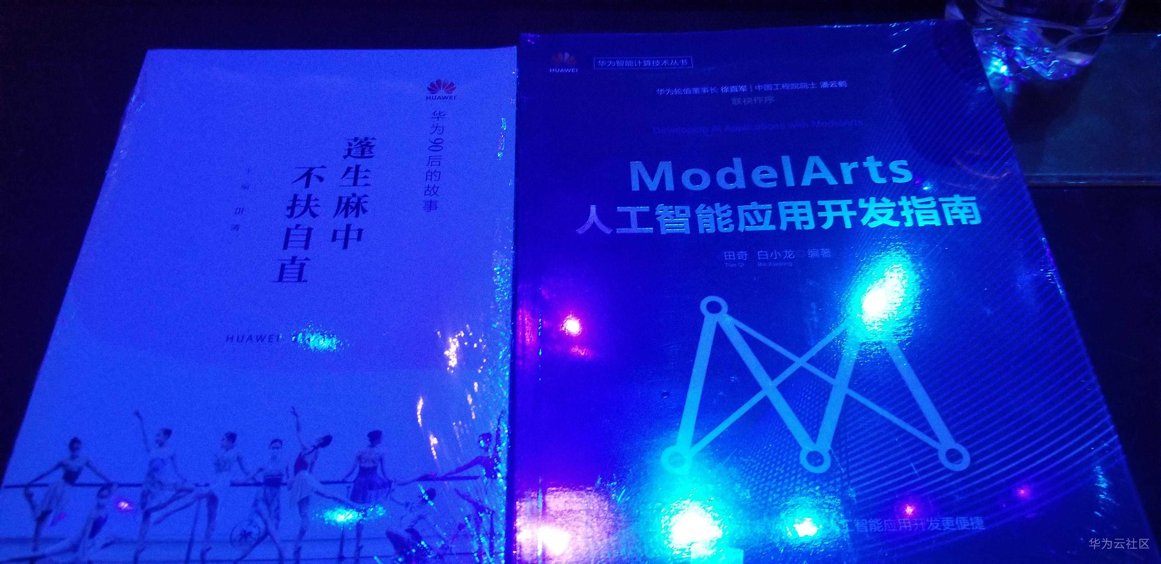 进入场馆后,查看了这两天的日程安排,今天上午9:00有一场主题演讲,我认为这应该是大会中的精华部分,绝对不能错过,于是早早的进入到红厅,找了一个好位置,每个座位上都摆放了两本书《蓬生麻中,不扶自直》和《Modelarts人工智能应用开发指南》,一个是华为想向大家传递的一种精神,另一个便是主推的Modelarts人工智能应用平台。