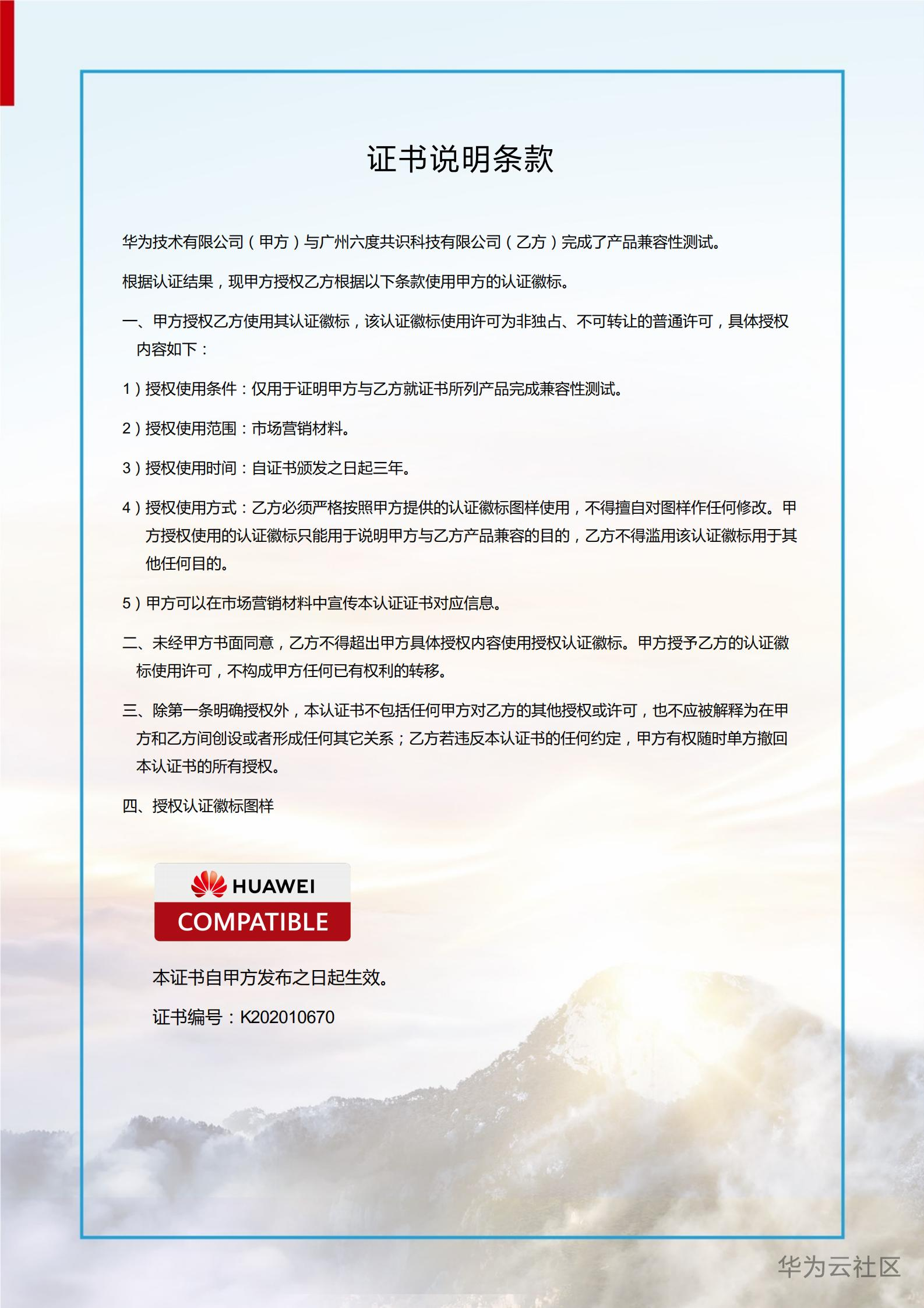 【重大喜讯】六度共识云通过华为云鲲鹏生态兼容认证
