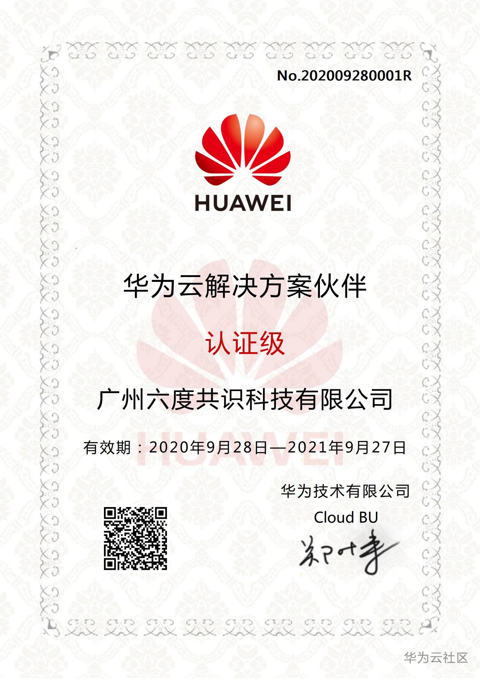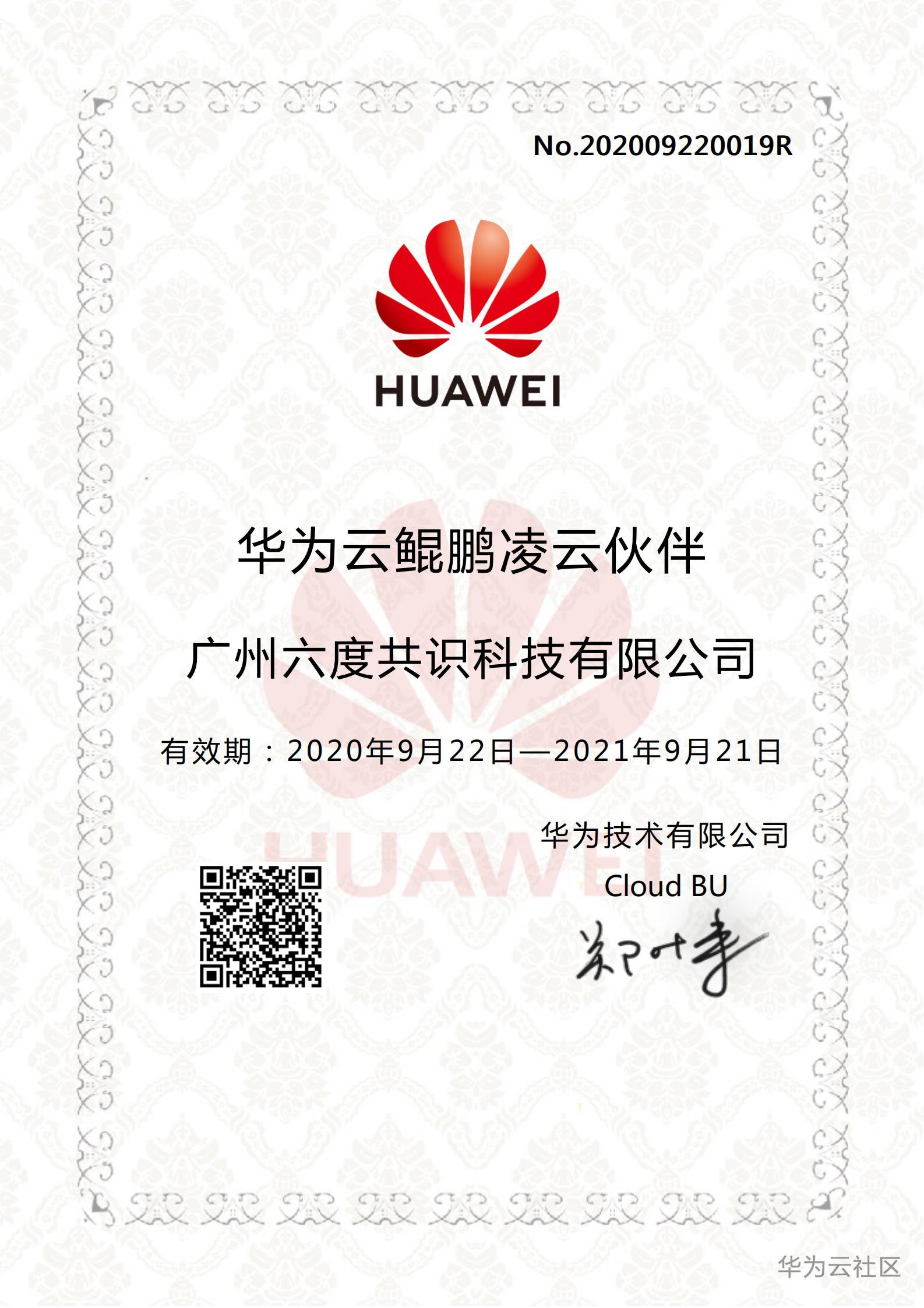 【重大喜讯】公元2020年10月30日下午,广州六度共识科技有限公司旗下区块链技术平台“六度共识云”通过中国华为云的鲲鹏生态兼容认证。意味着基于国产华为海思麒麟芯片的鲲鹏主机硬件产品,可以良好地搭载六度共识科技的区块链和云计算产品,服务广大的国内外数字经济企业。 在此之前,我司已于2020年9月27号通过了华为云解决方案合作伙伴认证、于2020年9月23号通过了华为云精英服务商计划。