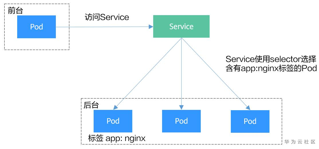 Kubernetes中的Service对象就是用来解决上述Pod访问问题的。Service有一个固定IP地址(在创建CCE集群时有一个服务网段的设置,这个网段专门用于给Service分配IP地址),Service将访问它的流量转发给Pod,具体转发给哪些Pod通过Label来选择,而且Service可以给这些Pod做负载均衡。