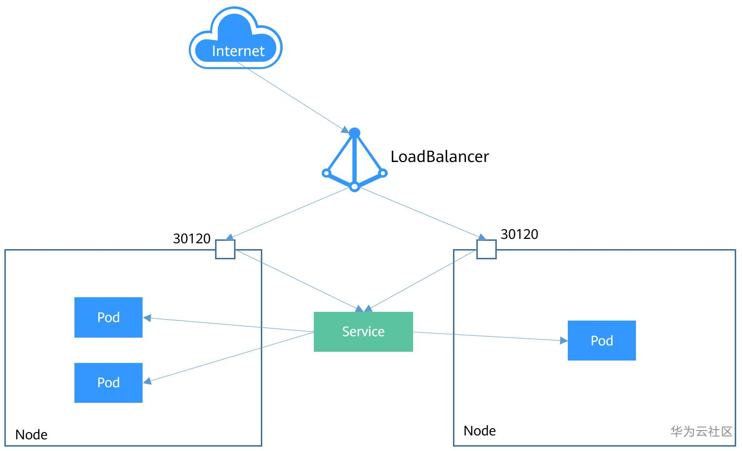 LoadBalancer类型的Service其实是NodePort类型Service的扩展,通过一个特定的LoadBalancer访问Service,这个LoadBalancer将请求转发到节点的NodePort。