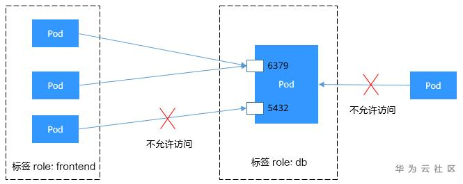 - podSelector: # 只允许具有role=frontend标签的Pod访问