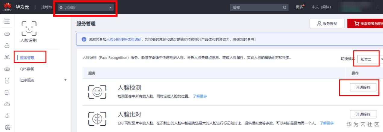 首先要开通人脸检测服务。
