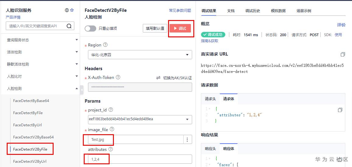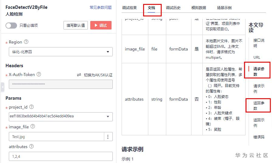 人脸检测API可以在华为云API Explorer进行调试。