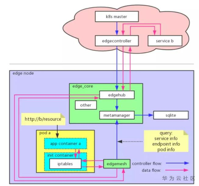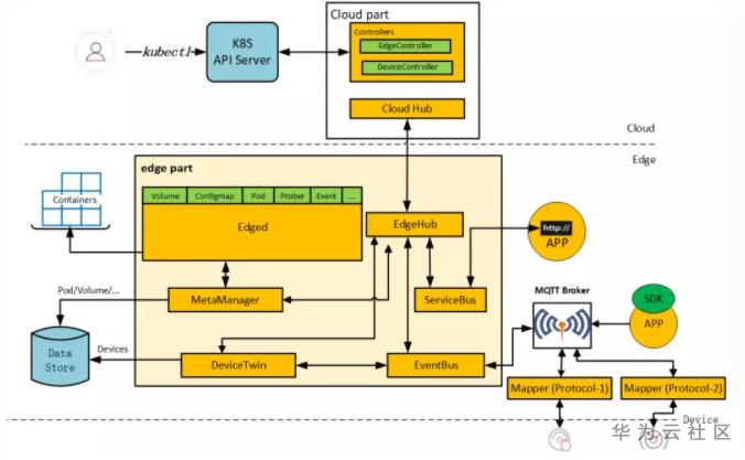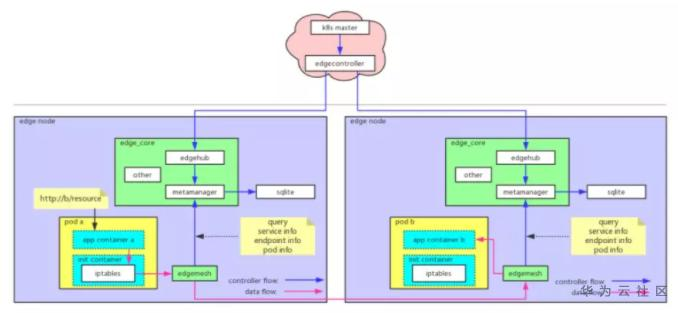EdgeController:管理边缘节点。它是一个扩展的 Kubernetes 控制器,管理边缘节点和 pod 元数据,以便数据可以面向特定的边缘节点。