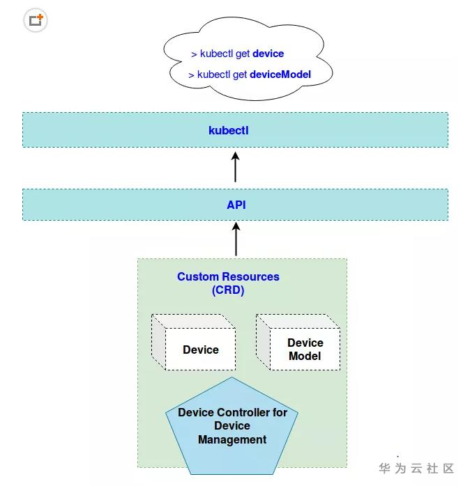 而KubeEdge的设备管理关注的是与边缘通信的外部设备,例如:蓝牙终端、智能传感器、工业设备等。KubeEdge对设备管理的实现采用的是Kubernetes官方推荐的Operator方式,并实现了设备孪生(device twin)。设备管理Operator的核心是Device CRD和Device Controller,其中Device CRD用来描述设备的状态等元数据,Device Controller运行在云上,负责在云和边之间同步设备状态的更新(包括设备实际状态和用户设定的期望状态)。