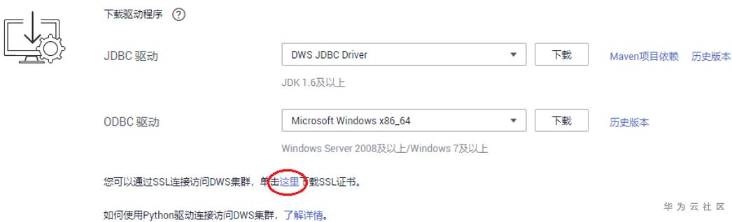 在“下载驱动程序”区域,单击“这里”下载SSL证书文件。