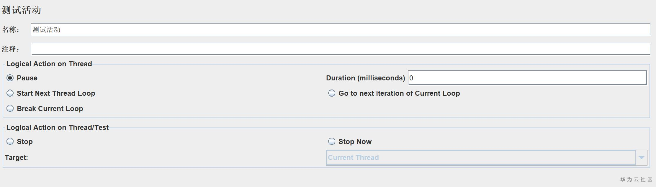 测试活动取样器是一个适用于条件控制器的取样器。测试元件不是生成样本,而是暂停或停止所选目标。此取样器也可以与事务控制器结合使用,因为它允许包含暂停而无需生成样本。对于可变延迟,将暂停时间设置为零,并将定时器添加为子级。完成正在进行的任何样本后 ,“stop”操作将停止线程或测试。“Stop Now”操作将停止测试,而无需等待样本完成; 它会中断任何活动样本。如果某些线程未能在5秒的时间限制内停止,则将在GUI模式下显示一条消息。您可以使用Stop命令尝试停止线程,如果不能停止,可以手动退出JMeter。在CLI模式下,如果某些线程未能在5秒的时间限制内停止,JMeter将退出。