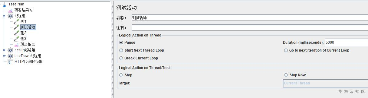 logical action on thread/test: 这个选项跟上面的logical 功能冲突,只能选一种。其效果是终止线程,当存在2个及以上线程数时,可以尝试使用。
