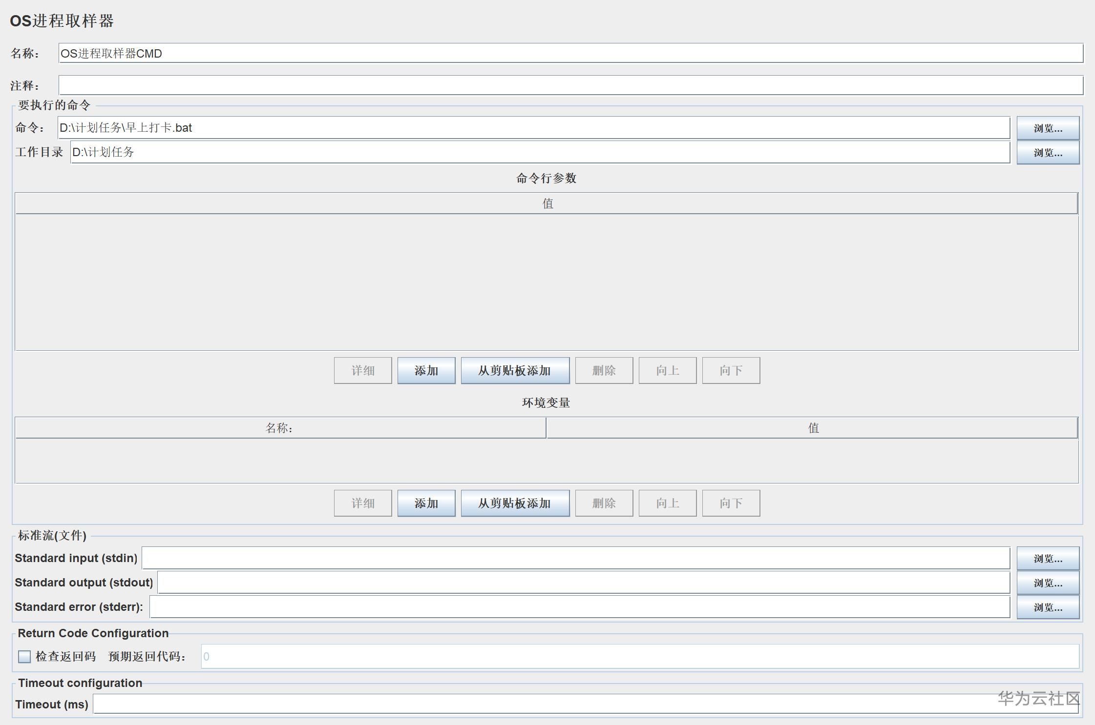 其存在的意义是辅助任务脚本执行。在性能测试不是单个取样的情况下,组合场景需要一些辅助命令,功能同python调用os类,执行cmd命令或者bat脚本。