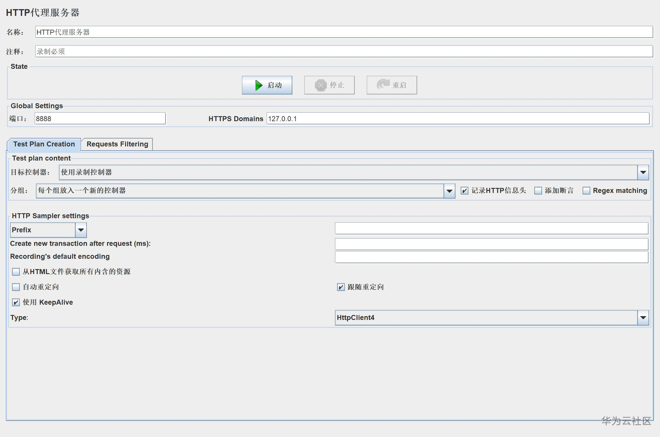 开启代理的步骤不说了,127.0.0.1,端口用8888好了,因为jmeter默认这个,想换别的也行。