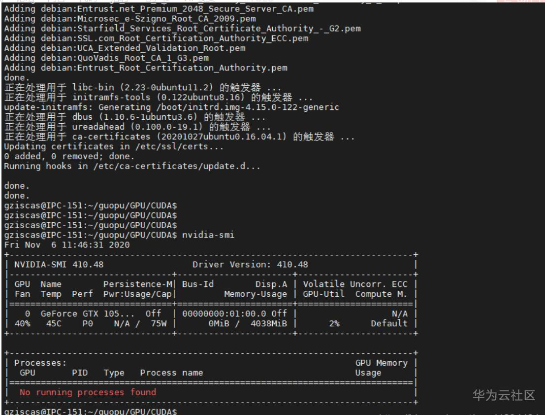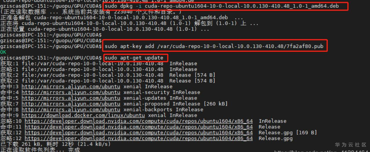 可以看到,本地cuda仓库被放到了 /var/cuda-repo-10-0-local-10.0.130-410.48 /