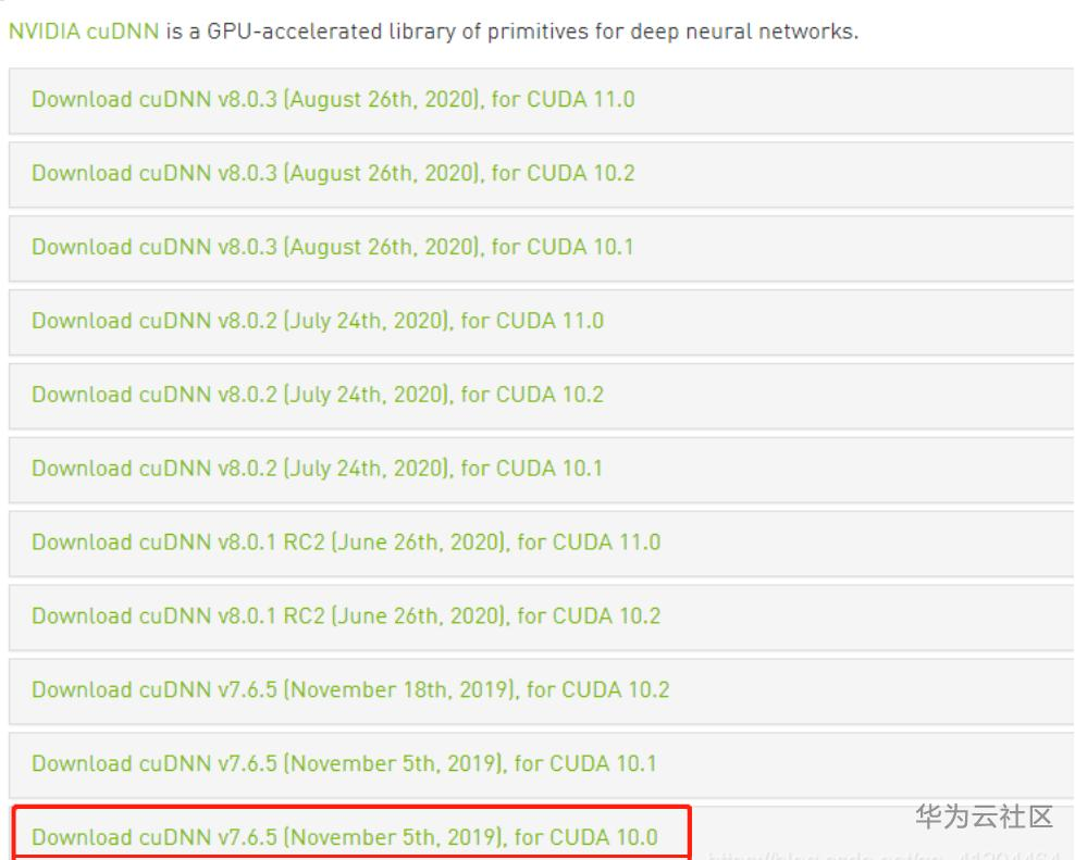 1、安装cuDNN 7.6.5版本,转到官网 https://developer.nvidia.com/rdp/cudnn-archive